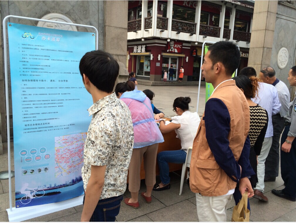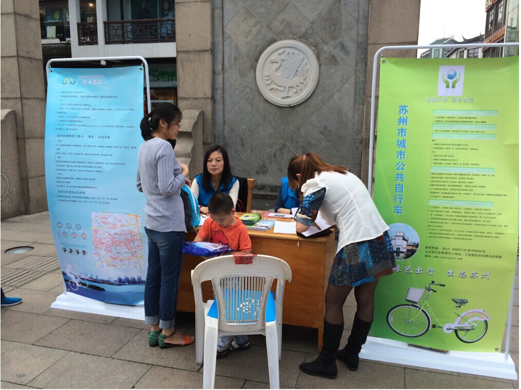 為倡導“低碳生活、綠色出行”的生態(tài)文明理念,借助“無車日”活動的契機,提倡城市公共自行車交通,傳播公共自行車文化。蘇州市市區(qū)道路停車管理所在9月20日上午(周六)開展公共自行車“一卡在手,騎樂無窮”宣傳活動,停車所青年職工和大學生志愿者一起參與到了此次活動的各項工作中。公共自行車配合此次活動,在觀前街設立了臨時辦卡點,并向成功辦卡的市民發(fā)放紀念品。