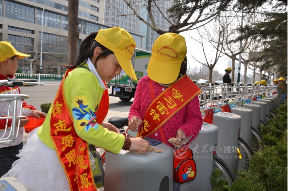 我市推行公共自行車以來(lái),給廣大市民帶來(lái)了方便,然而也出現(xiàn)了隨意丟棄公共自行車、公共自行車載人等不文明現(xiàn)象,嚴(yán)重影響了公共自行車的正常使用。對(duì)此,濰坊市公共自行車管理中心的工作人員呼吁市民養(yǎng)成良好的騎行習(xí)慣,一定要愛(ài)護(hù)公共自行車,不要破壞它。