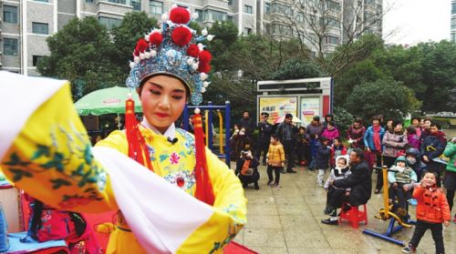 核心提示:昨天下午,雖然室外天氣陰冷,但香江花園熱鬧非凡,滬劇《洞房》、越劇《借紅燈》、錫劇《雙推磨》等耳熟能詳、喜聞樂見的經(jīng)典名劇精彩選段輪番上演,高潮迭起,讓小區(qū)里的居民大飽眼福、耳福,直呼過癮,現(xiàn)場不時(shí)響起陣陣掌聲和歡呼聲。今年71歲的胡奶奶坐在前面,一邊聽一邊跟著舞臺上的演員唱,她樂呵呵地告訴記者,她記得小時(shí)候過年除了穿新衣服,有好吃的,最開心的就是全家人一起扛著凳子去看戲,“現(xiàn)在我已經(jīng)五六十年沒有看過戲了,今天送戲到家門口,真是開心?!?/p>