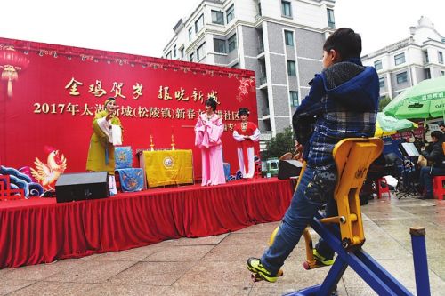 松陵文體站工作人員林穎暉介紹,春節(jié)腳步臨近,為活躍和豐富城鄉(xiāng)居民的精神文化生活,營造喜迎接新春的濃厚氛圍,吳江太湖新城開展了“金雞賀歲、報(bào)曉新城”迎新春送戲下鄉(xiāng)活動,從1月16日到1月20日,他們將走進(jìn)梅里村、香江花園、南劉村、八坼敬老院、南厙村等村和社區(qū)開展精彩的戲曲專場演出,把歡樂和笑聲送進(jìn)百姓家門,讓他們品嘗一道道節(jié)日的文化大餐。