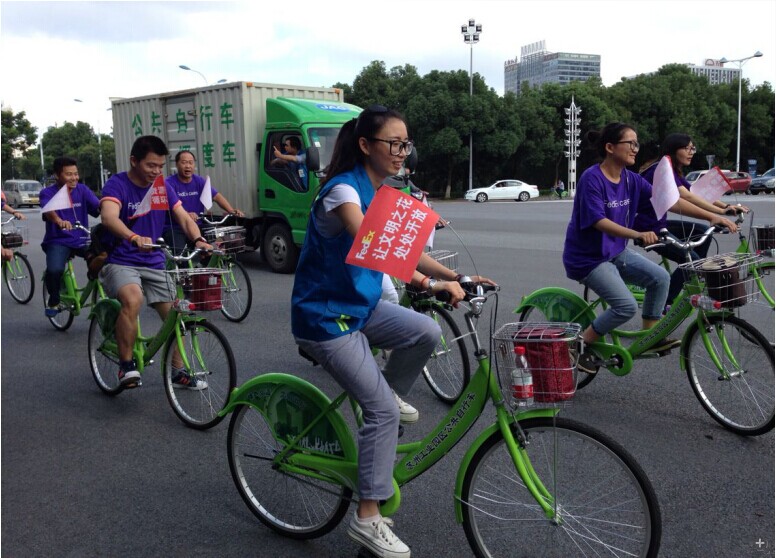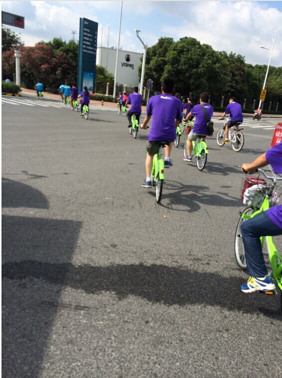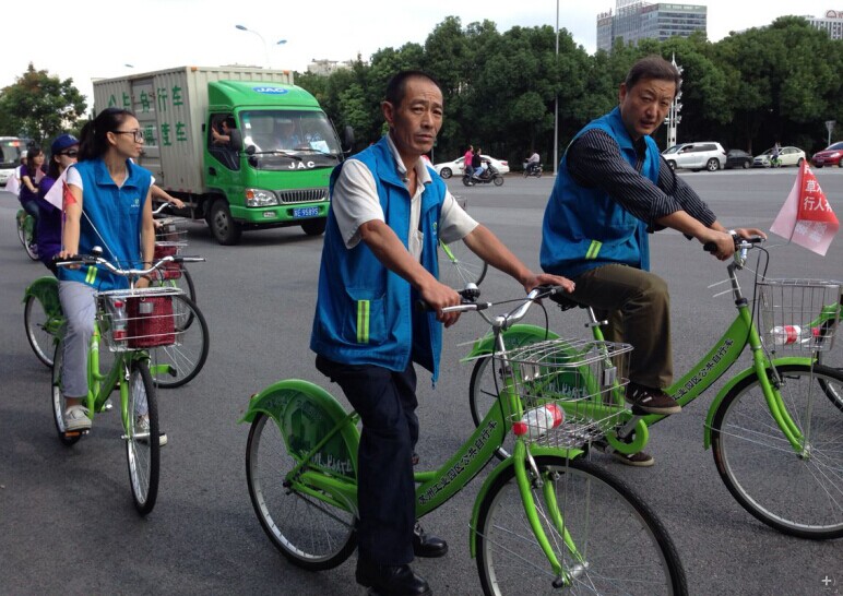 這次活動(dòng)準(zhǔn)備了30輛綠色自行車(chē),掛上環(huán)保旗幟。沿著園區(qū)的主干道進(jìn)行了1~2小時(shí)的騎行。騎行隊(duì)伍分為兩支,一支主要圍繞湖西商業(yè)中心進(jìn)行騎行,一支圍繞湖東圓融廣場(chǎng)騎行。沿路向環(huán)衛(wèi)工人等戶外工作人員發(fā)放愛(ài)心禮品。