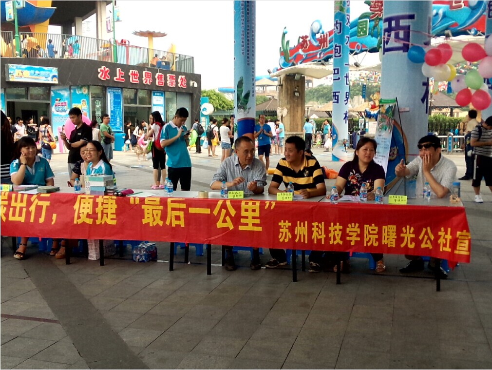 近日,“低碳出行,便捷最后1公里”公共自行車主題宣傳活動在蘇州水上樂園廣場舉行?;顒蝇F(xiàn)場,由蘇州科技學(xué)院曙光公社制作的“蘇州古城區(qū)公共自行車手繪地圖”首次亮相,吸引了眾多市民的關(guān)注。和手繪地圖一起提交給蘇州公共自行車管理中心的還有曙光公社學(xué)子們歷時兩個多月完成的《公共自行車與其他公共交通方式換乘調(diào)研報告》。