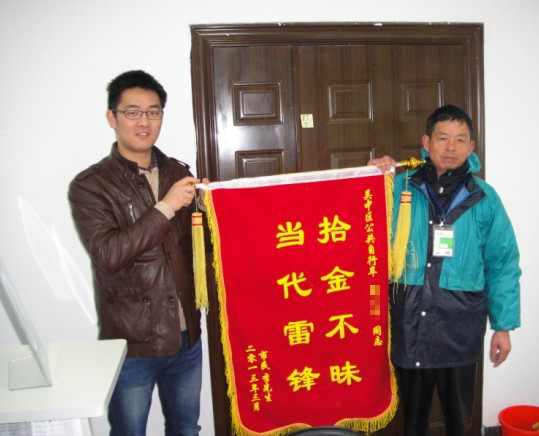 3月7日 吳中區(qū)公共自行車運(yùn)營員工梁師傅,在新蘇國際站點(diǎn)附近撿到錢包一個,里面有7000多現(xiàn)金、銀行卡、身份證、市民卡等重要證件。梁師傅及時交給部門領(lǐng)導(dǎo)并把它交給派出所,在派出所工作人員的幫助下,找到了失主。失主認(rèn)領(lǐng)后非常感動。