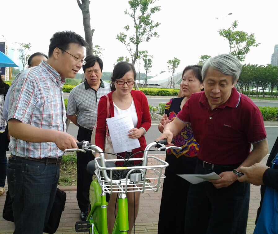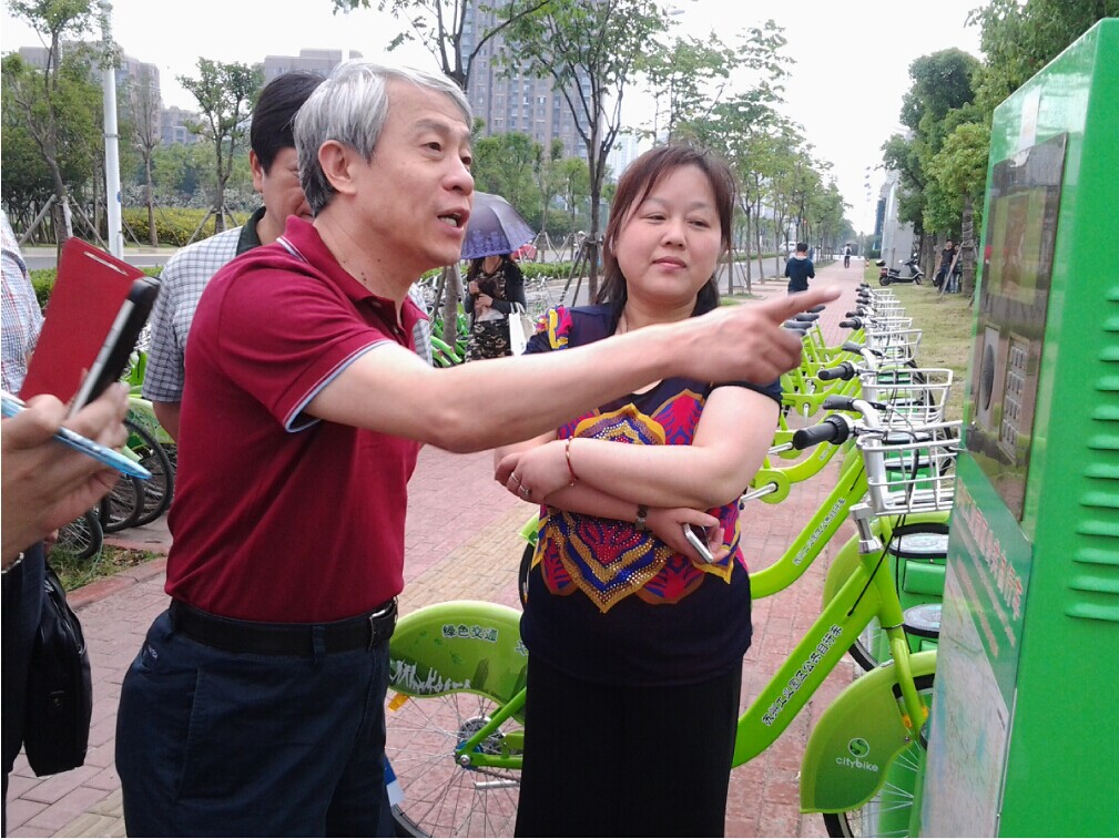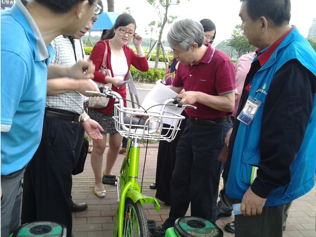6月3日,下午3:00. 交通運輸部公交都市創(chuàng)建督導(dǎo)專家組領(lǐng)導(dǎo)來蘇調(diào)研,在園區(qū)鐘南街軌交站口的公共自行車站點現(xiàn)場。專家組咨詢了蘇州公共自行車目前有多少站點、投放多少自行車、如何借用等等方面的問題,蘇州公共自行車管理中心張經(jīng)理耐心詳細回答專家組一一提出的問題,并現(xiàn)場演示操作自助查詢功能。還介紹了最新開通的微信查詢功能。專家組一行對蘇州公共自行車系統(tǒng)給予了充份的肯定。