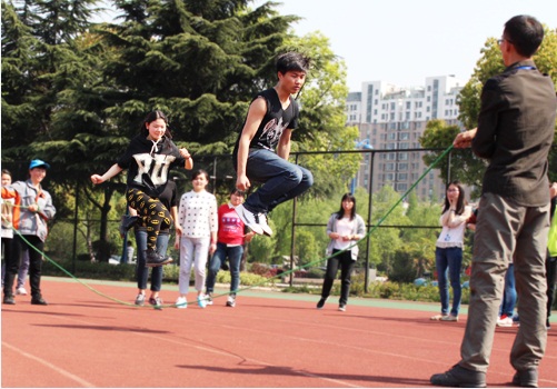 陽(yáng)光下,永安員工與河海大學(xué)的同學(xué)們肆意揮灑著汗水。整個(gè)活動(dòng)分為三個(gè)環(huán)節(jié),分別是“騎行找線索” “跳大繩”以及“撕名牌比拼”。每個(gè)環(huán)節(jié)中,各個(gè)團(tuán)隊(duì)的隊(duì)員都合理的分工,默契的配合,齊心協(xié)力的完成好每一項(xiàng)任務(wù)。盡管天氣炎熱,但是絲毫沒(méi)有減退大家的熱情,歡聲笑語(yǔ)在河海大學(xué)的操場(chǎng)上空回蕩。