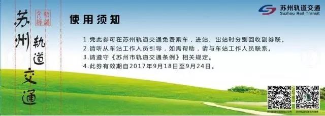 活動(dòng)四:積極倡導(dǎo)全民乘坐公交9月16日9:00-17:00,蘇州軌道交通將派發(fā)免乘體驗(yàn)券,市民可以憑行駛證原件至軌道交通1號(hào)線玉山路站、廣濟(jì)南路站、東環(huán)路站、星湖街站;2號(hào)線陸慕站、三香廣場(chǎng)站、寶帶橋南站、月亮灣站;4號(hào)線蘇州灣東站、南門(mén)站、孫武紀(jì)念園站、越溪站,以上12個(gè)車站的客服中心領(lǐng)取免費(fèi)體驗(yàn)券,每張行駛證原件可領(lǐng)取2張免費(fèi)體驗(yàn)券。市民憑免費(fèi)體驗(yàn)券可在2017年9月18日至9月24日運(yùn)營(yíng)時(shí)間內(nèi)免費(fèi)乘坐蘇州軌道交通。每張?bào)w驗(yàn)券可使用兩次,一人一票。