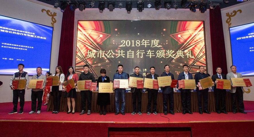 會議首先由濰坊市城市管理局局長張文作為會議主辦地代表進行致辭,由中國道路運輸協(xié)會城市客運分會的常務副秘書長曹承對會議順利召開致賀詞,由中國道路運輸協(xié)會城市客運分會公共自行車工作部主任黃志耀審議通過2018年度城市公共自行車工作部工作報告,并宣布了《關于表彰城市公共自行車先進集體和個人的決定》,其中濰坊市公共自行車項目、杭州市公共自行車項目等15家單位榮獲全國公共自行車行業(yè)卓越項目獎。永安行科技股份有限公司等8家單位榮獲全國公共自行車行業(yè)產品創(chuàng)新獎,珠海城建公共自行車有限公司等28家單位榮獲全國公共自行車行業(yè)優(yōu)秀管理獎,濰坊公共自行車李鵬同志等37人獲優(yōu)秀管理者稱號。