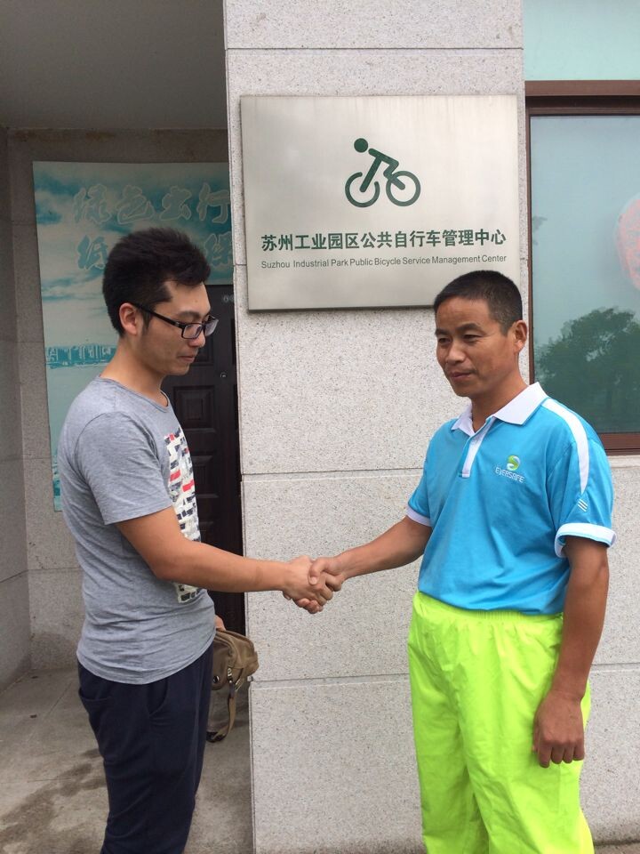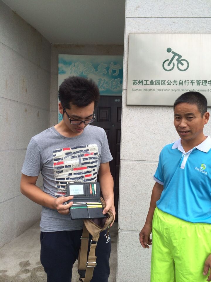 失主認領之后非常感動,他說:“2500元現金是準備繳納房租的,如果丟失,下月房租都不知道怎么辦。非常感謝蘇州公共自行車的工作人員?!?/p>