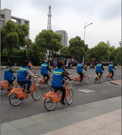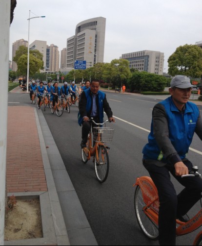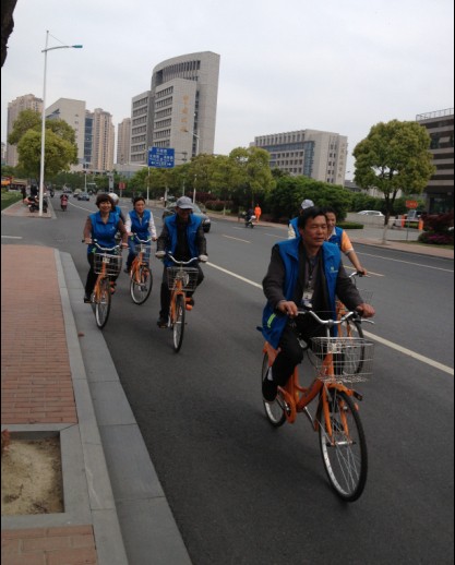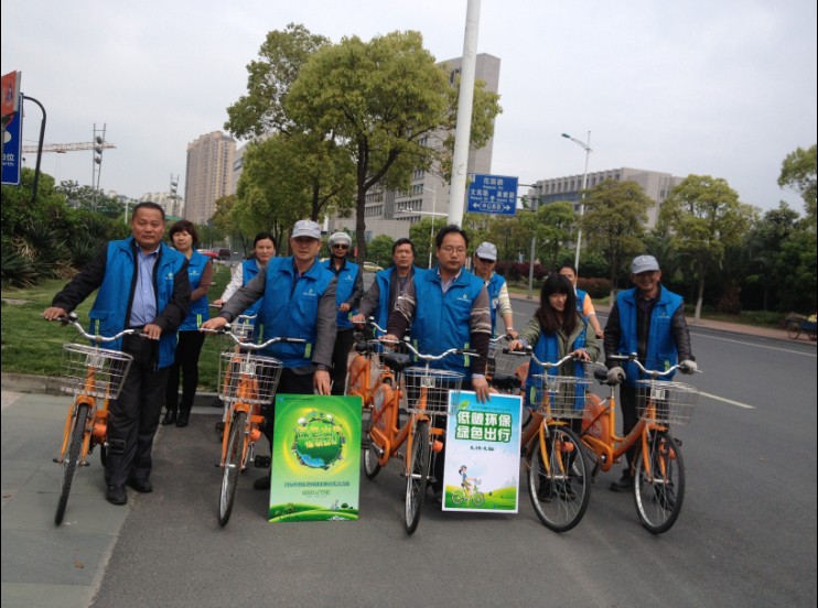 公共自行車吳江分公司在4月22日世界地球日開展耗油、不排氣、強身健體活動,員工紛紛騎上自行車,走上街頭,身體力行宣揚低碳生活,快樂騎行。